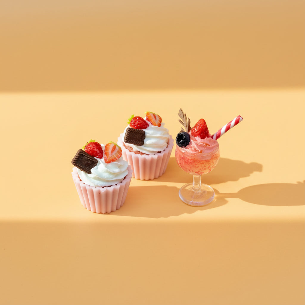 Scène décorative miniature sur le thème des fruits rouges, 100 % faite à la main.